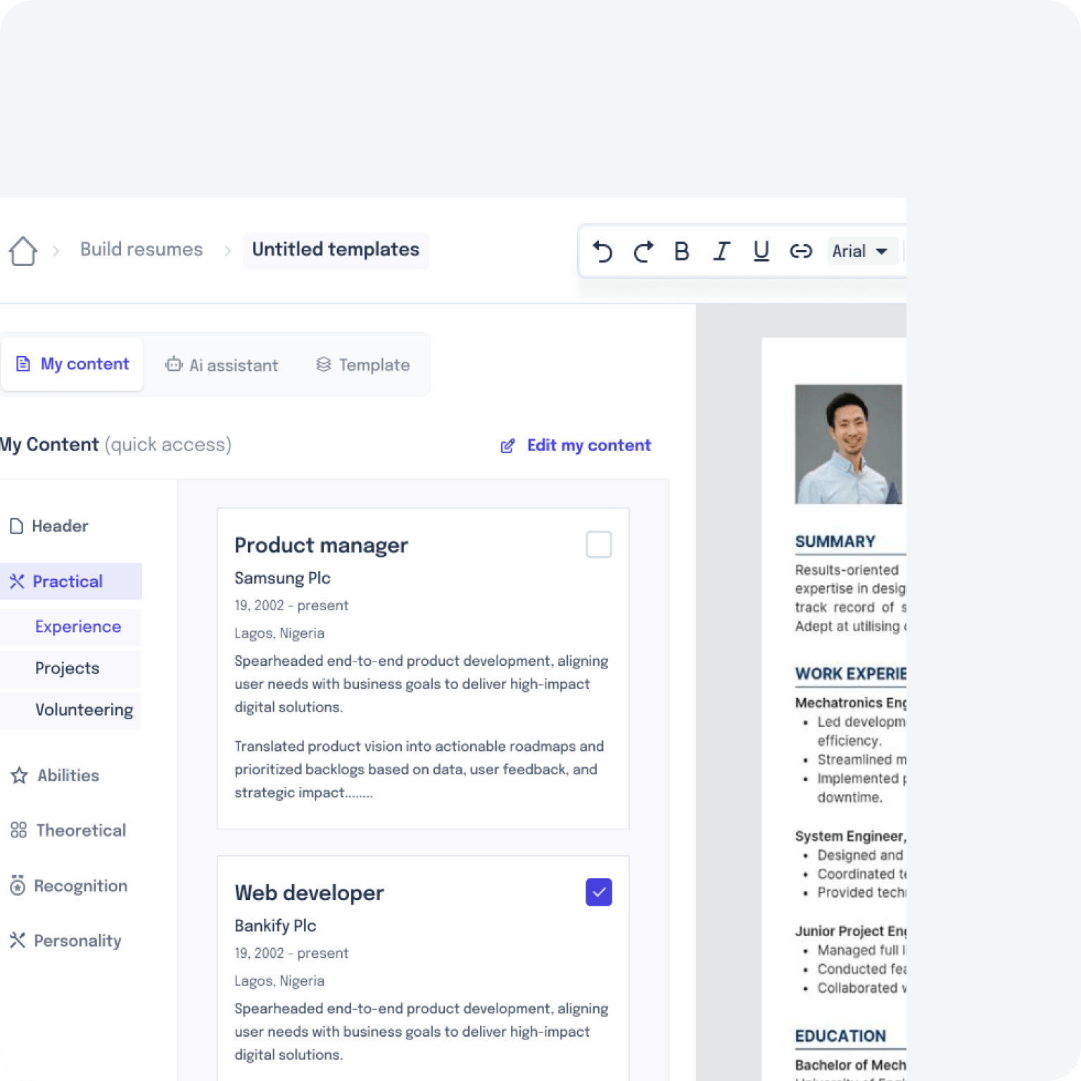 Build a standout resume in minutes.